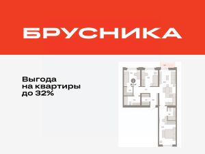 Квартира с кухней-гостиной и тремя спальнями в жилом районе "Зарека". Особенности планировки: гардеробная, разнесённые спальни, предчистовая отделка, мастер-спальня, балкон.