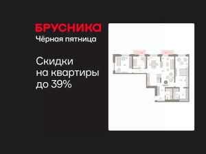 Квартира с кухней-гостиной и тремя спальнями в жилом районе "Зарека". Особенности планировки: гардеробная, разнесённые спальни, предчистовая отделка, мастер-спальня, балкон.