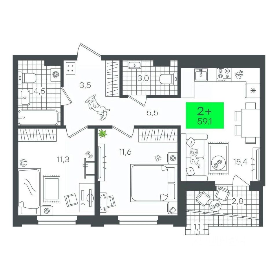 Продаётся 2-комнатная квартира в строящемся доме (Д5.2 (Малкова, 5)), срок сдачи: III-кв. 2026, общей площадью 59.18 кв.м., на 9 этаже. Компания 4D приступила к строительству нового жилого комплекса "Гранд квартал". Новый ЖК находится в зеленой зоне Калининского района, южнее микрорайона Тюменская слобода.