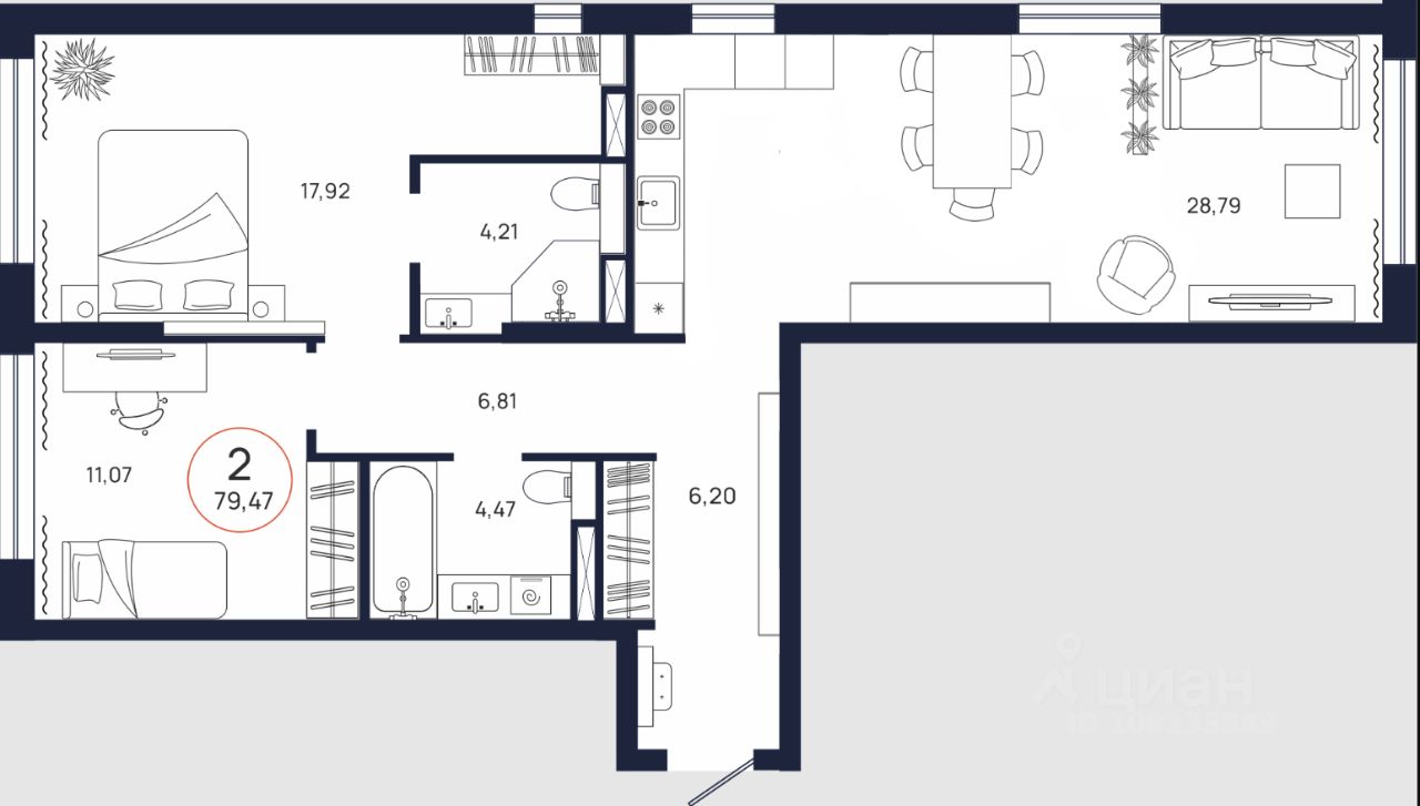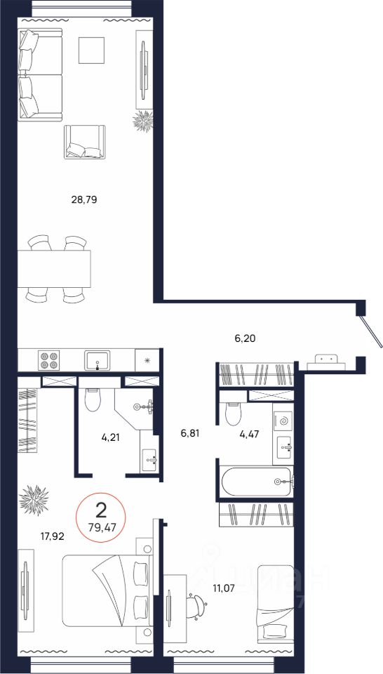 Общая площадь79,47 м²