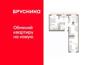 Квартира с кухней-гостиной и тремя спальнями в Октябрьском на Туре. Особенности планировки: вид во двор, гардеробная, мастер-спальня, предчистовая отделка, рабочий кабинет, разнесённые спальни, терраса на крыше.