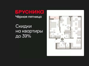 Квартира с кухней-гостиной и двумя спальнями в Октябрьском на Туре. Особенности планировки: гардеробная, лоджия, предчистовая отделка, мастер-спальня.