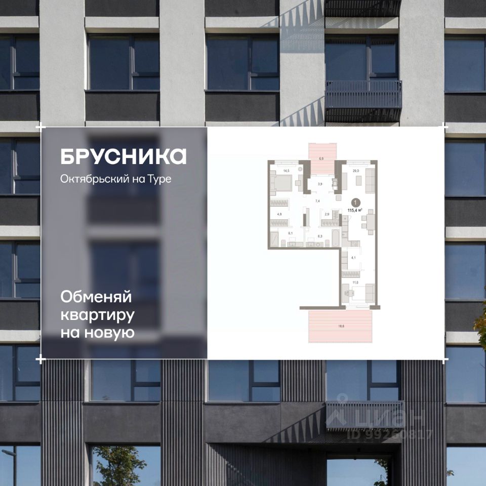 Квартира с кухней-гостиной и одной спальней в Октябрьском на Туре. Особенности планировки: вид во двор, гардеробная, мастер-спальня, окна в пол, отдельный вход, панорамное остекление, постирочная, потолки 3 м и выше, свободная планировка, терраса на крыше.