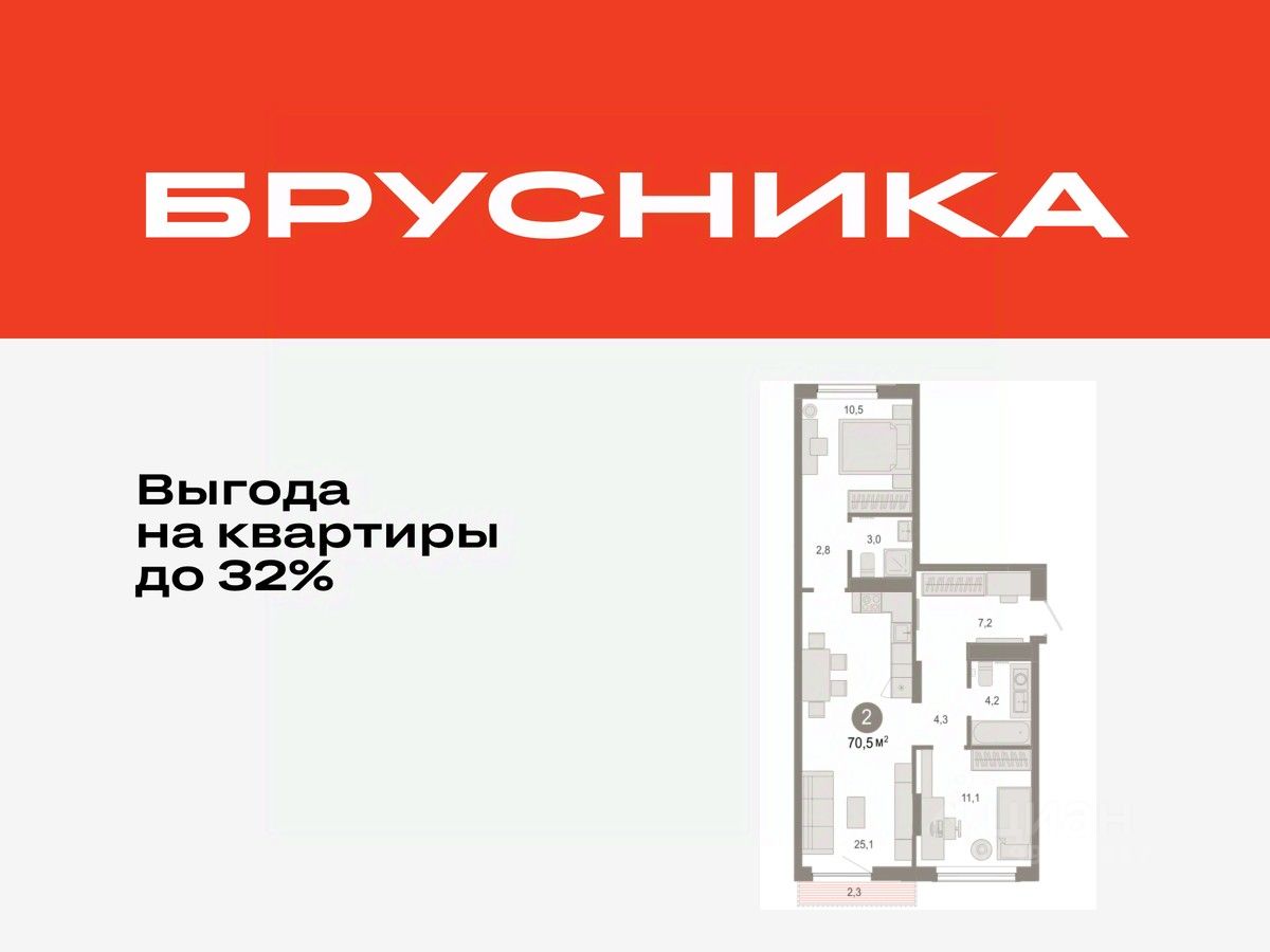 Квартира с кухней-гостиной и двумя спальнями в Октябрьском на Туре. Особенности планировки: вид во двор, разнесённые спальни, предчистовая отделка, мастер-спальня, балкон.