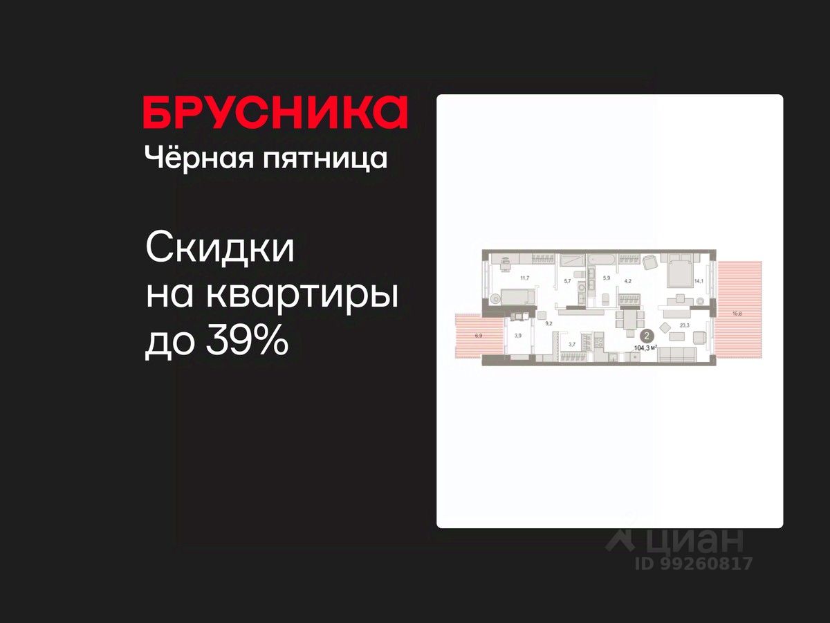 Квартира с кухней-гостиной и двумя спальнями в Октябрьском на Туре. Особенности планировки: гардеробная, окна в пол, без отделки, вид во двор, отдельный вход, панорамное остекление, свободная планировка, разнесённые спальни, мастер-спальня, терраса на крыше.
