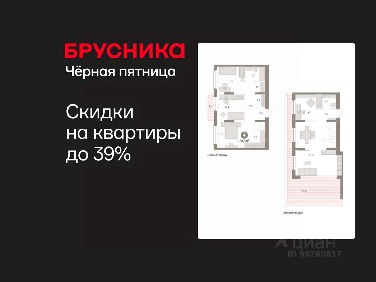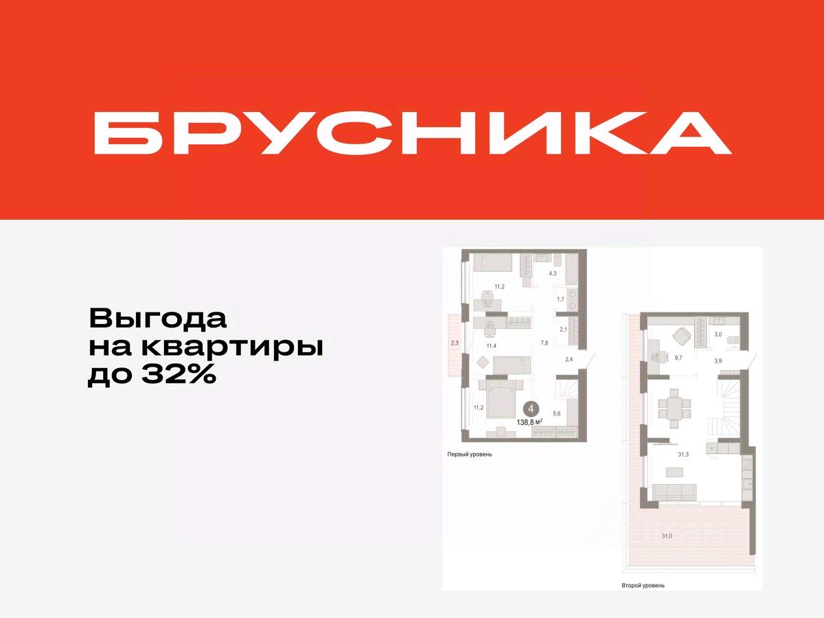 Двухуровневая квартира с кухней-гостиной и четырьмя спальнями в Октябрьском на Туре. Особенности планировки: гардеробная, без отделки, рабочий кабинет, двухуровневая, панорамное остекление, свободная планировка, мастер-спальня, балкон, терраса на крыше.