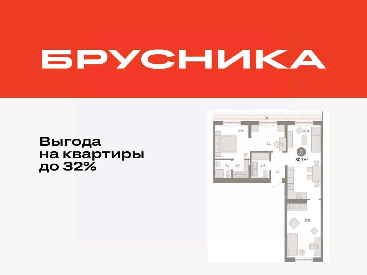 Квартира с кухней-гостиной и тремя спальнями в Октябрьском на Туре. Особенности планировки: гардеробная, рабочий кабинет, вид во двор, разнесённые спальни, предчистовая отделка, мастер-спальня, терраса на крыше.