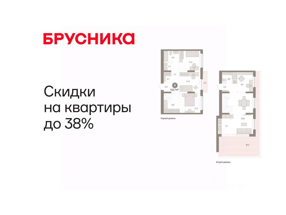 Двухуровневая квартира с кухней-гостиной и четырьмя спальнями в Октябрьском на Туре. Особенности планировки: балкон, гардеробная, двухуровневая, мастер-спальня, панорамное остекление, постирочная, рабочий кабинет, свободная планировка, терраса на крыше.