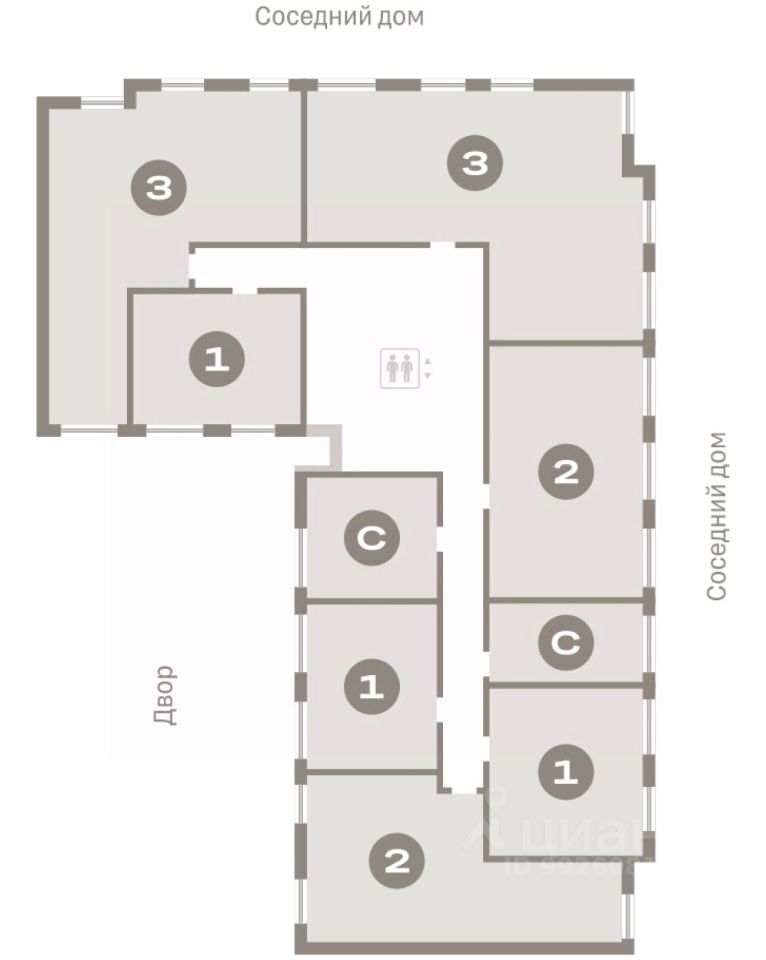 Квартира с кухней-гостиной и тремя спальнями в Октябрьском на Туре. Особенности планировки: гардеробная, вид во двор, лоджия, разнесённые спальни, предчистовая отделка, мастер-спальня, балкон.