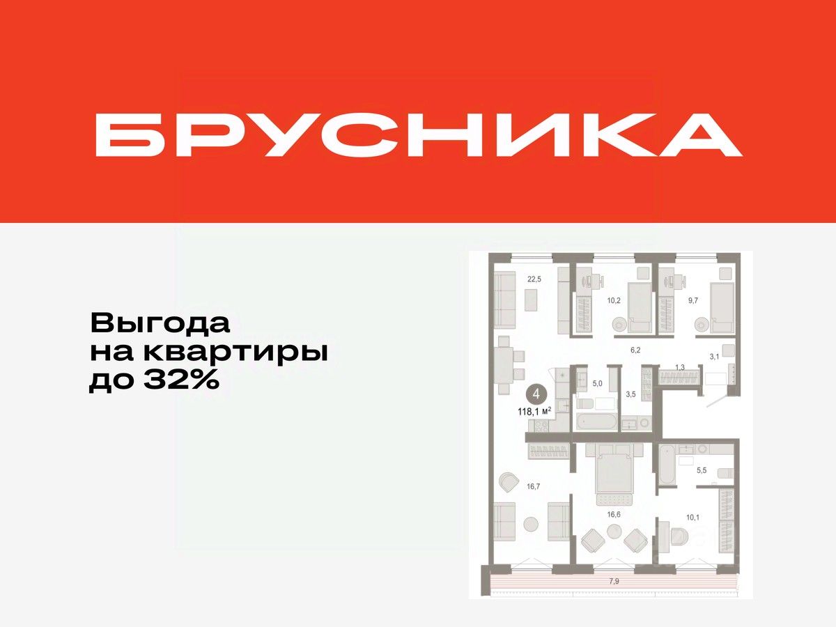 Квартира с кухней-гостиной и четырьмя спальнями в Октябрьском на Туре. Особенности планировки: второй санузел, гардеробная, рабочий кабинет, вид во двор, разнесённые спальни, предчистовая отделка, постирочная, терраса на крыше.