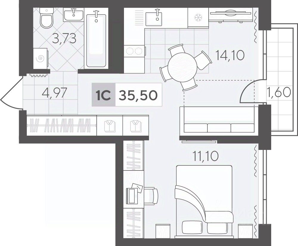 Однокомнатная квартира 35.5 кв.м на 3 этаже с продуманной планировкой. Просторная кухня-гостиная идеально подходит для приёма гостей, а уютная спальня станет личным местом отдыха.