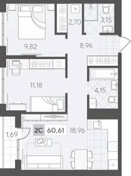Двухкомнатная квартира 60.61 кв.м на 3 этаже — это удобное пространство для комфортной жизни. Отдельные спальни позволят каждому члену семьи иметь личное пространство. В кухне-гостиной комфортно вместе готовить, проводить семейные ужины или настольные игры с друзьями.