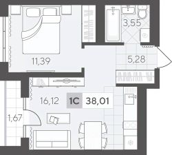 Уютная однокомнатная квартира 38.01 кв.м на 4 этаже. Функциональная планировка позволяет удобно организовать быт, а кухня-гостиная подойдёт для отдыха и общения.