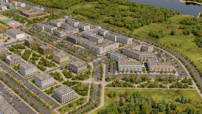 Квартал представлен 4-этажными домами. Архитектура проникнута близостью к природе. Естественные цвета гармонично вписывают дома в существующий ландшафт, поддерживают настроение и позволяют отдохнуть от городской пестроты.