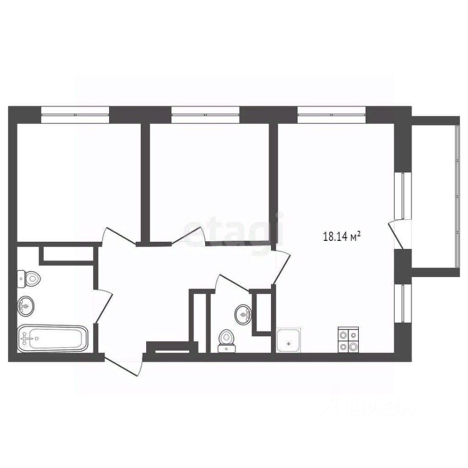 Большое преимущество данной планировки это наличие 2 санузлов, 2 изолированные спальни и светлой просторной кухни-гостинной.
