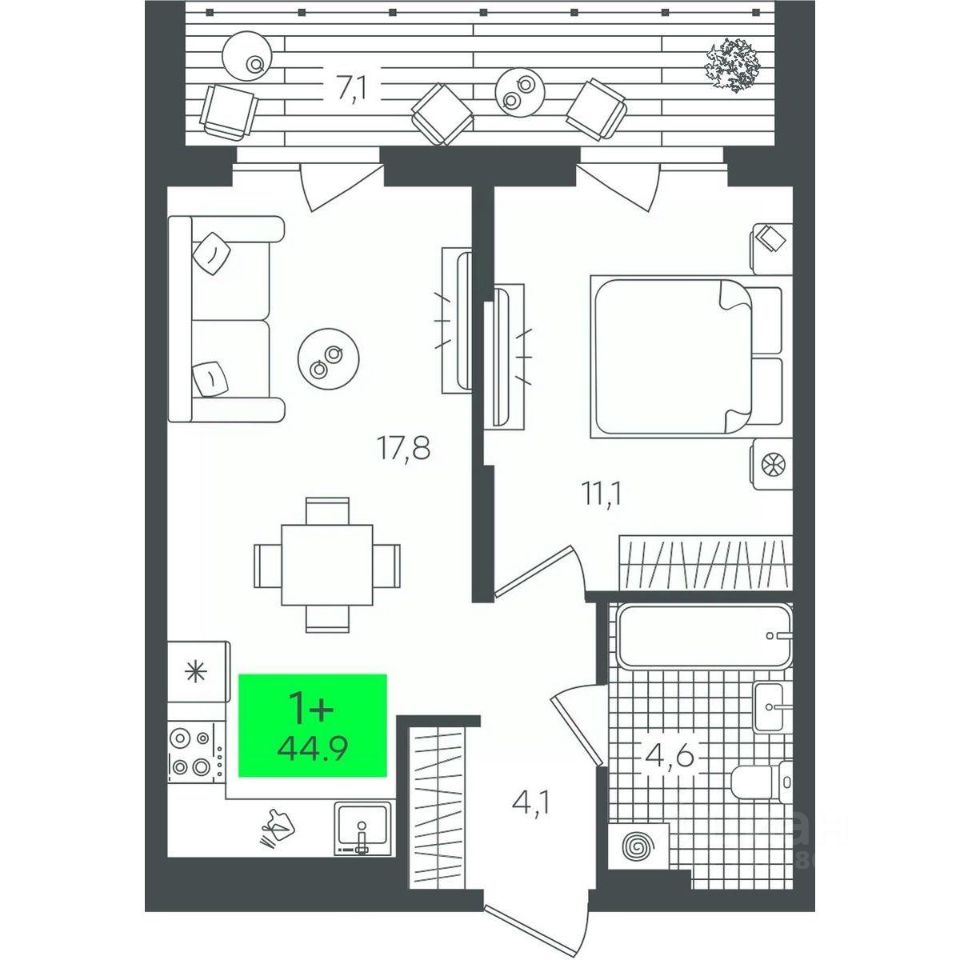 Продаётся 1-комнатная квартира в строящемся доме (В5.4 (Малкова, 19)), срок сдачи: III-кв. 2026, общей площадью 44.97 кв.м., на 9 этаже. Компания 4D приступила к строительству нового жилого комплекса "Гранд квартал". Новый ЖК находится в зеленой зоне Калининского района, южнее микрорайона Тюменская слобода.