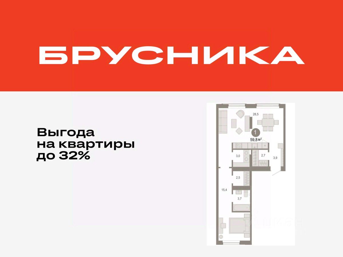 Квартира с кухней-гостиной и одной спальней в Октябрьском на Туре. Особенности планировки: гардеробная, вид во двор, предчистовая отделка, мастер-спальня, постирочная.