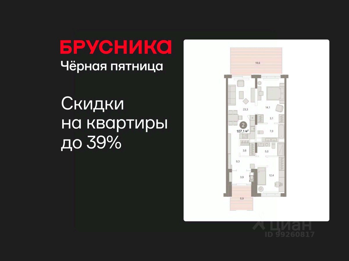 Квартира с кухней-гостиной и двумя спальнями в Октябрьском на Туре. Особенности планировки: гардеробная, окна в пол, без отделки, вид во двор, отдельный вход, панорамное остекление, свободная планировка, разнесённые спальни, мастер-спальня, терраса на крыше.