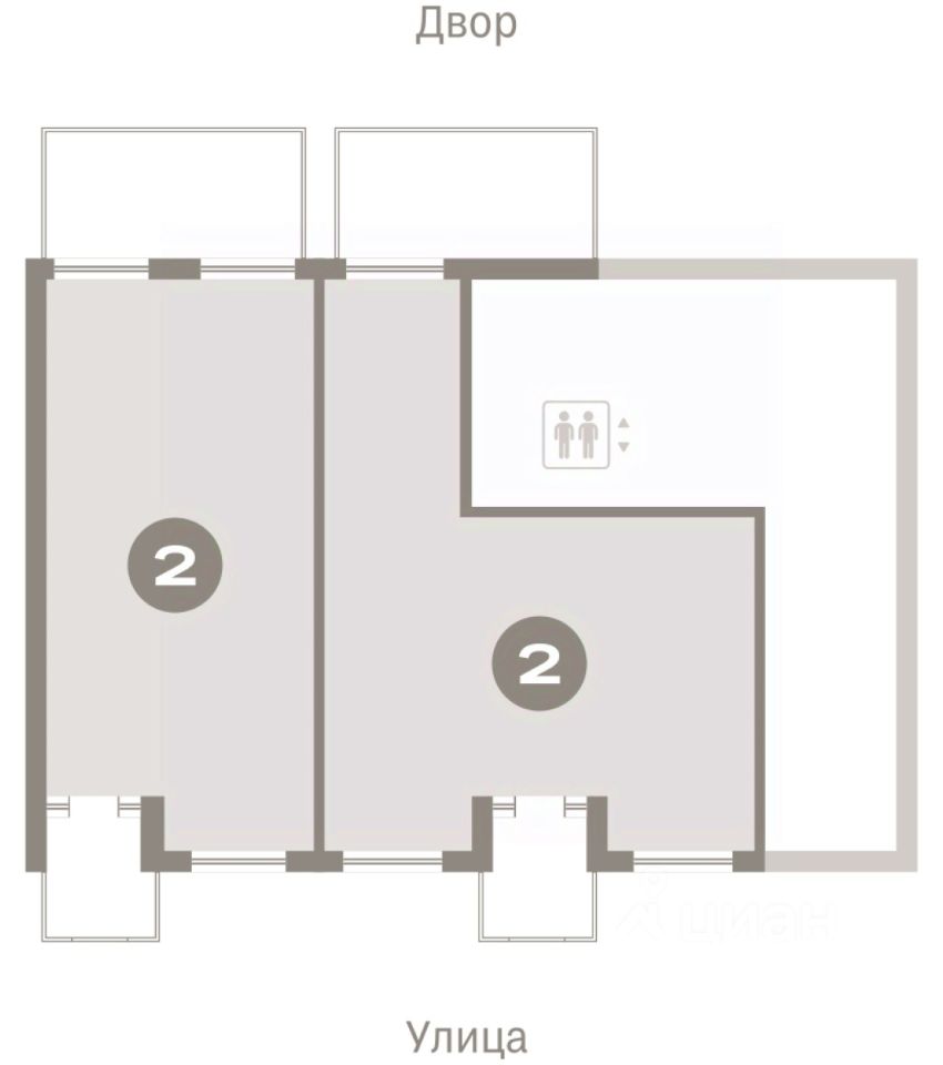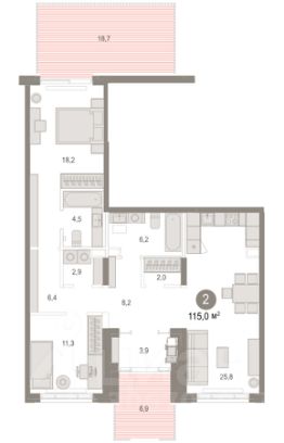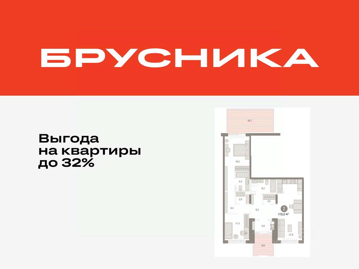 Квартира с кухней-гостиной и двумя спальнями в Октябрьском на Туре. Особенности планировки: гардеробная, окна в пол, без отделки, вид во двор, отдельный вход, панорамное остекление, свободная планировка, разнесённые спальни, мастер-спальня, постирочная, терраса на крыше.