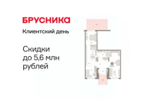 Квартира с кухней-гостиной и двумя спальнями в Октябрьском на Туре. Особенности планировки: предчистовая отделка.