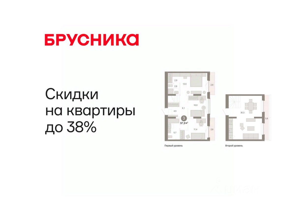 Квартира с кухней-гостиной и тремя спальнями в Октябрьском на Туре. Особенности планировки: балкон, гардеробная, мастер-спальня, свободная планировка, терраса на крыше.