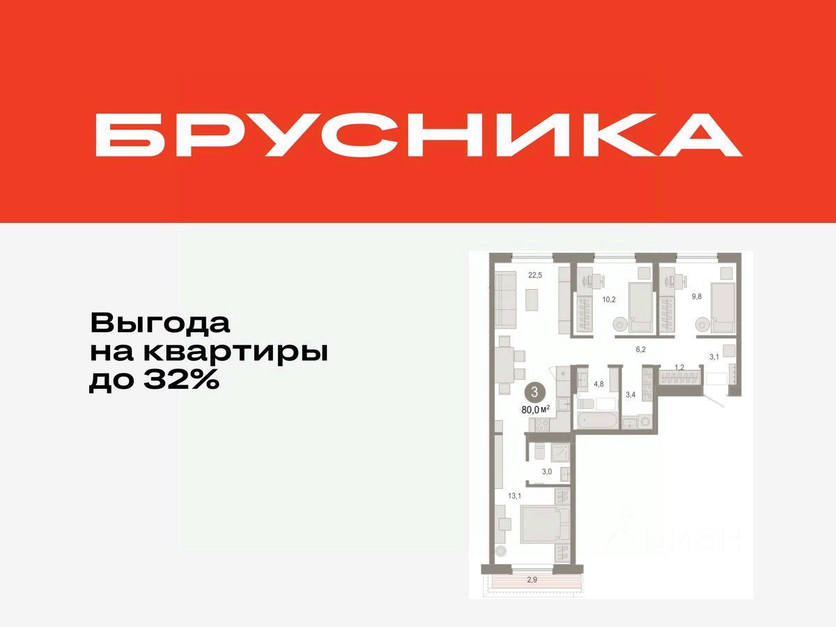 Квартира с кухней-гостиной и тремя спальнями в Октябрьском на Туре. Особенности планировки: гардеробная, вид во двор, разнесённые спальни, предчистовая отделка, мастер-спальня, постирочная, терраса на крыше.
