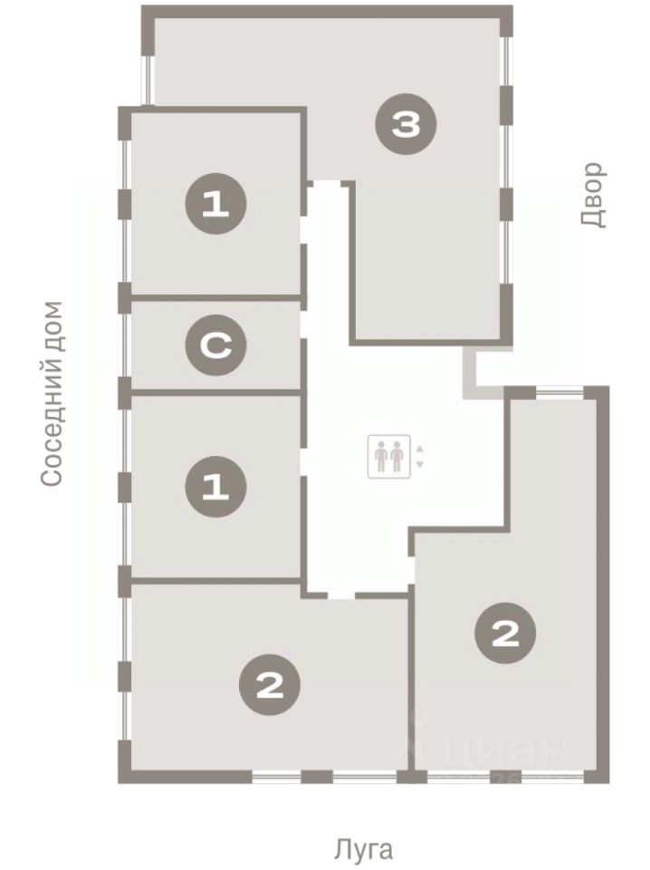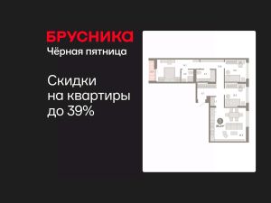 Квартира с кухней-гостиной и тремя спальнями в Октябрьском на Туре. Особенности планировки: вид во двор, лоджия, разнесённые спальни, предчистовая отделка, мастер-спальня, постирочная.