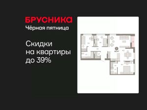 Квартира с кухней-гостиной и тремя спальнями в Октябрьском на Туре. Особенности планировки: гардеробная, рабочий кабинет, лоджия, разнесённые спальни, предчистовая отделка, мастер-спальня.