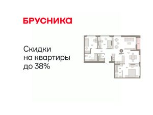 Квартира с кухней-гостиной и тремя спальнями в Октябрьском на Туре. Особенности планировки: мастер-спальня, предчистовая отделка, рабочий кабинет.