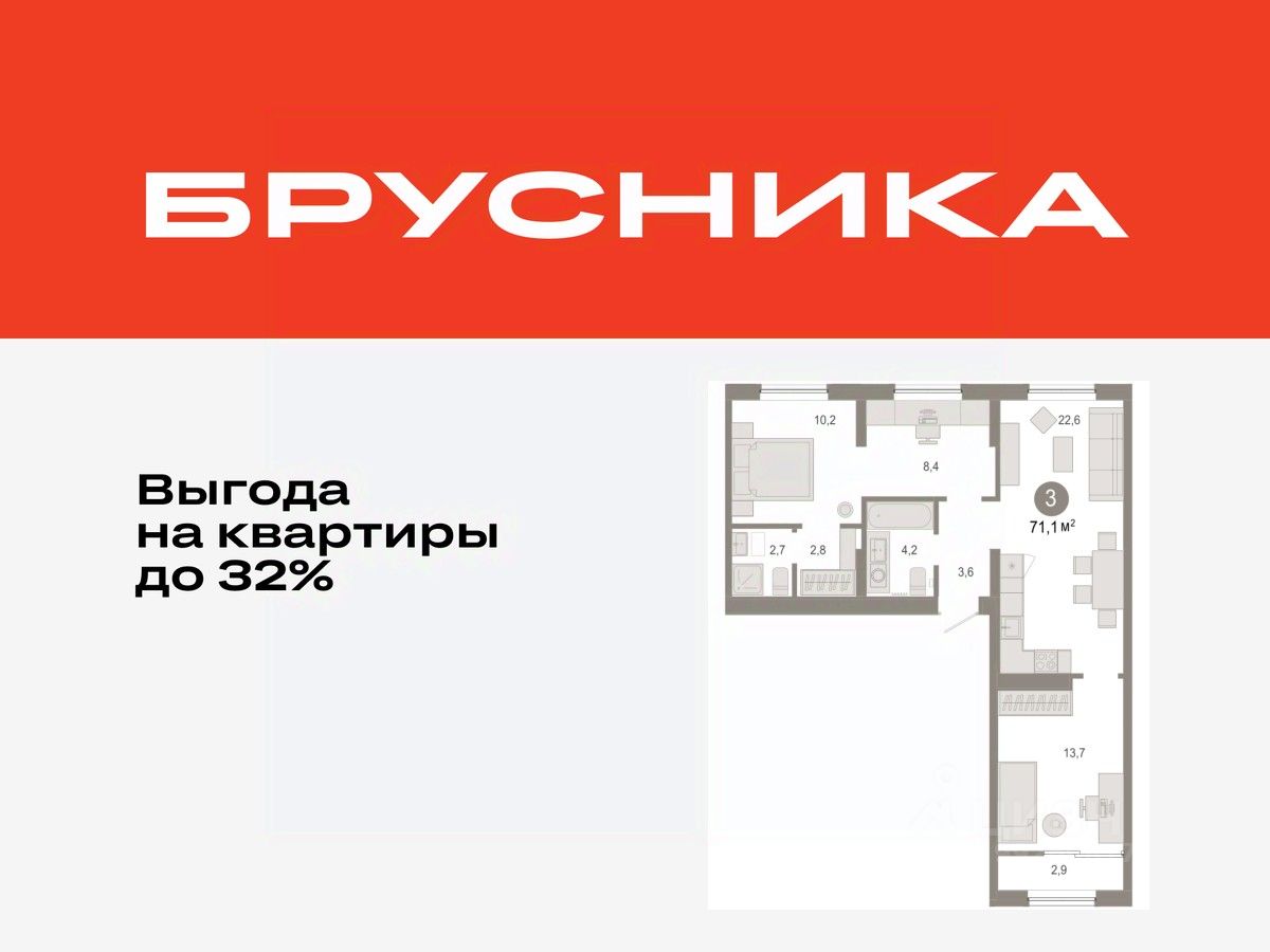 Квартира с кухней-гостиной и тремя спальнями в Октябрьском на Туре. Особенности планировки: гардеробная, рабочий кабинет, вид во двор, тёплая лоджия, разнесённые спальни, предчистовая отделка, мастер-спальня.