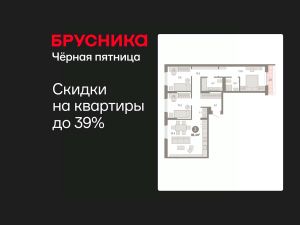 Квартира с кухней-гостиной и тремя спальнями в Октябрьском на Туре. Особенности планировки: вид во двор, лоджия, разнесённые спальни, предчистовая отделка, мастер-спальня, постирочная.