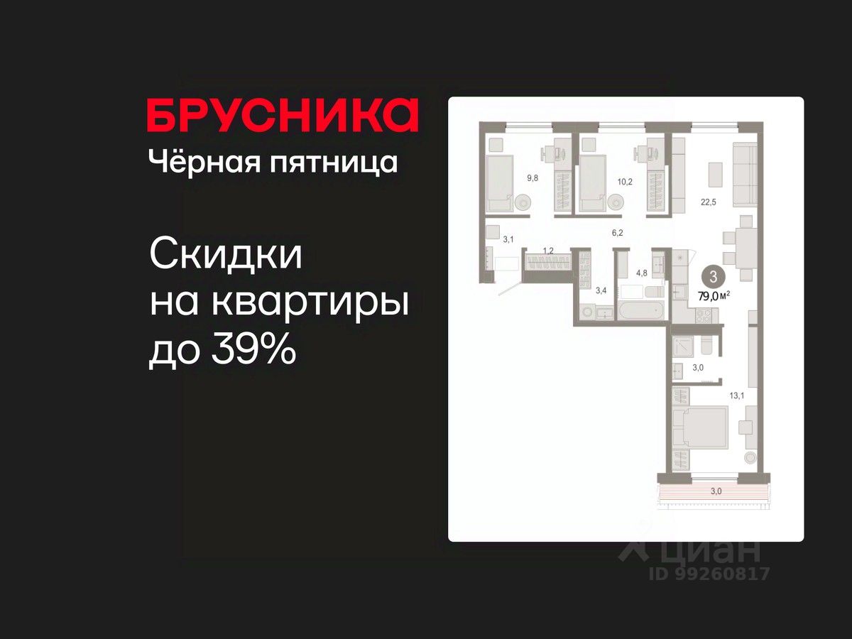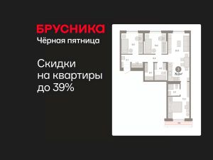 Квартира с кухней-гостиной и тремя спальнями в Октябрьском на Туре. Особенности планировки: гардеробная, вид во двор, разнесённые спальни, предчистовая отделка, мастер-спальня, постирочная, терраса на крыше.