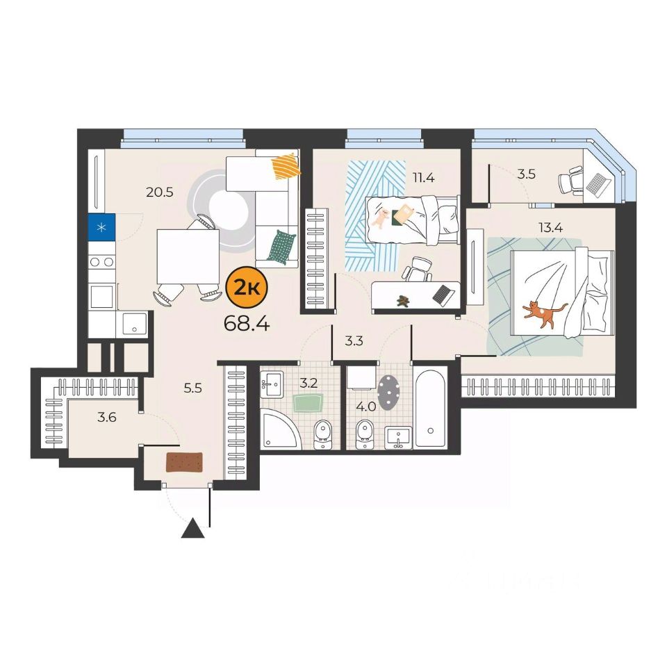Общая площадь68,4 м²