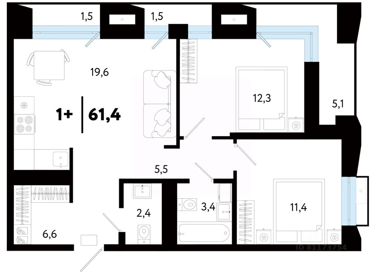 Общая площадь61,43 м²