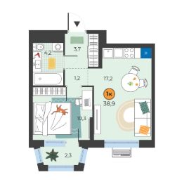 Общая площадь37,3 м²