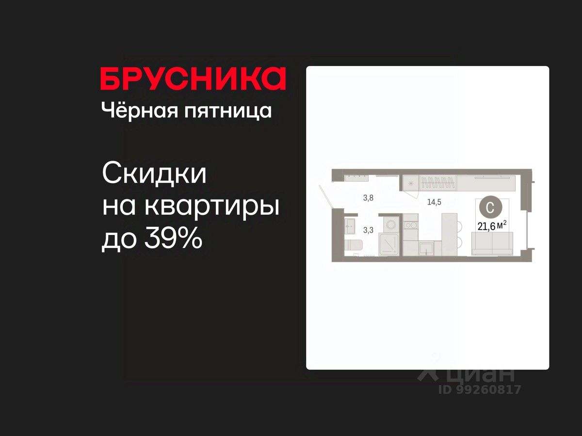 Однокомнатная студия с предчистовой отделкой в ЖК "Республики 205" на 6 этаже. Общая площадь: 21.57 кв.м., площадь гостиной 14.5 кв.м., из которых 5 кв.м. выделено под кухонную зону. Все окна выходят на одну сторону. В квартире один совмещенный санузел. Высота потолков 2.7 м.