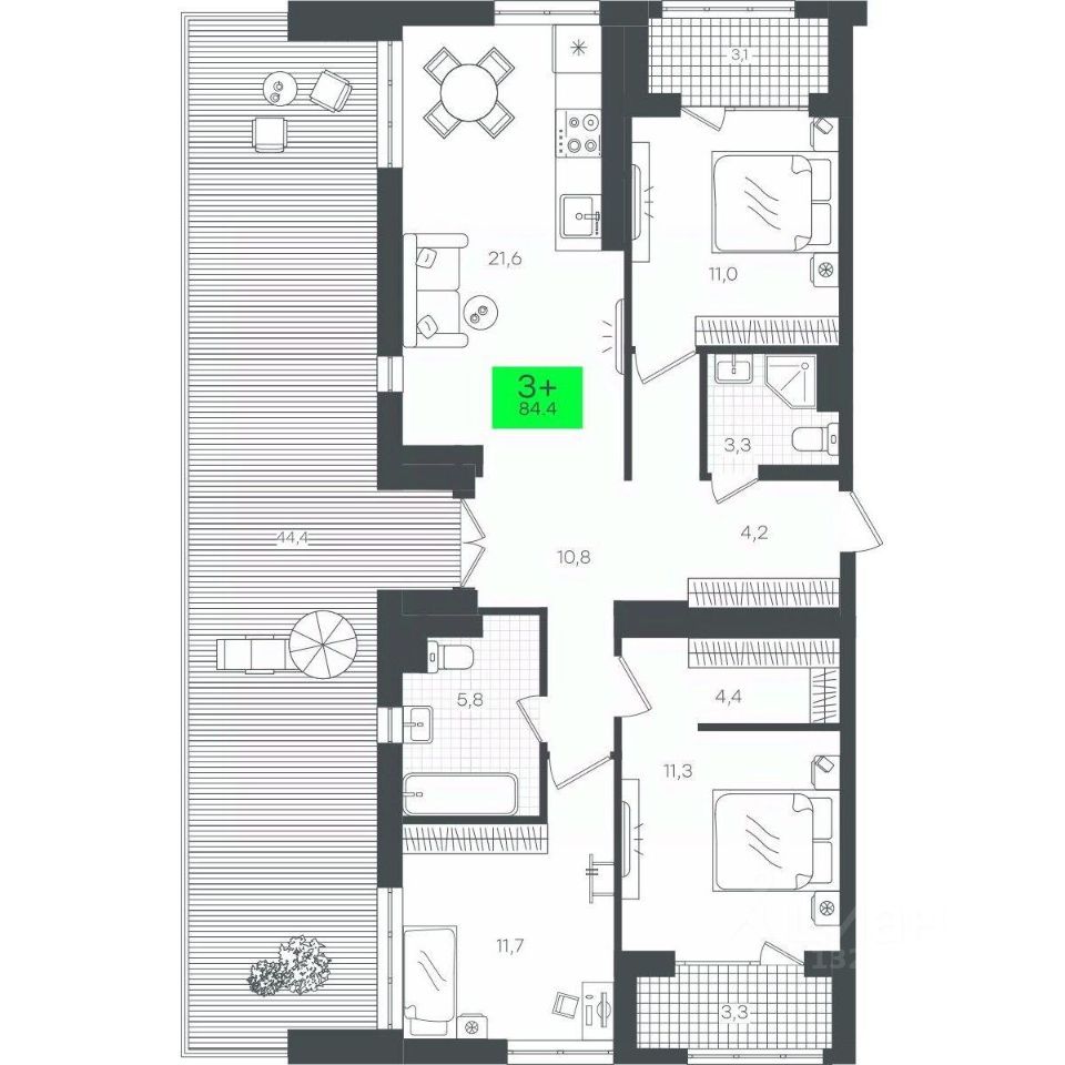 Пентхаус 3+ в двумя мастер-спальнями и большой террасой. Терраса на 9 этаже расширит возможности для времяпрепровождения дома, здесь можно принимать солнечные ванны, заниматься спортом на свежем воздухе, жарить барбекю и устраивать пикники летом, украшать елку и получать больше витамина D зимой. В каждой мастер-спальне спроектирован свой лаунж-балкон. В одной - дополнительная ванная, в другой - гардеробная. В основной ванной спроектировано будуарное окно. Гранд Квартал, 2-Д6.1, 9, 1, квартира 40