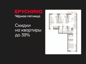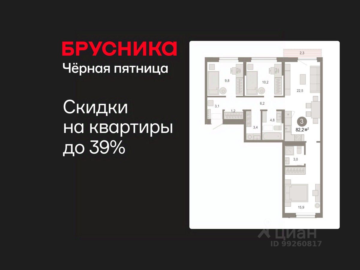 Квартира с кухней-гостиной и тремя спальнями в Октябрьском на Туре. Особенности планировки: гардеробная, вид во двор, разнесённые спальни, предчистовая отделка, мастер-спальня, постирочная, балкон.