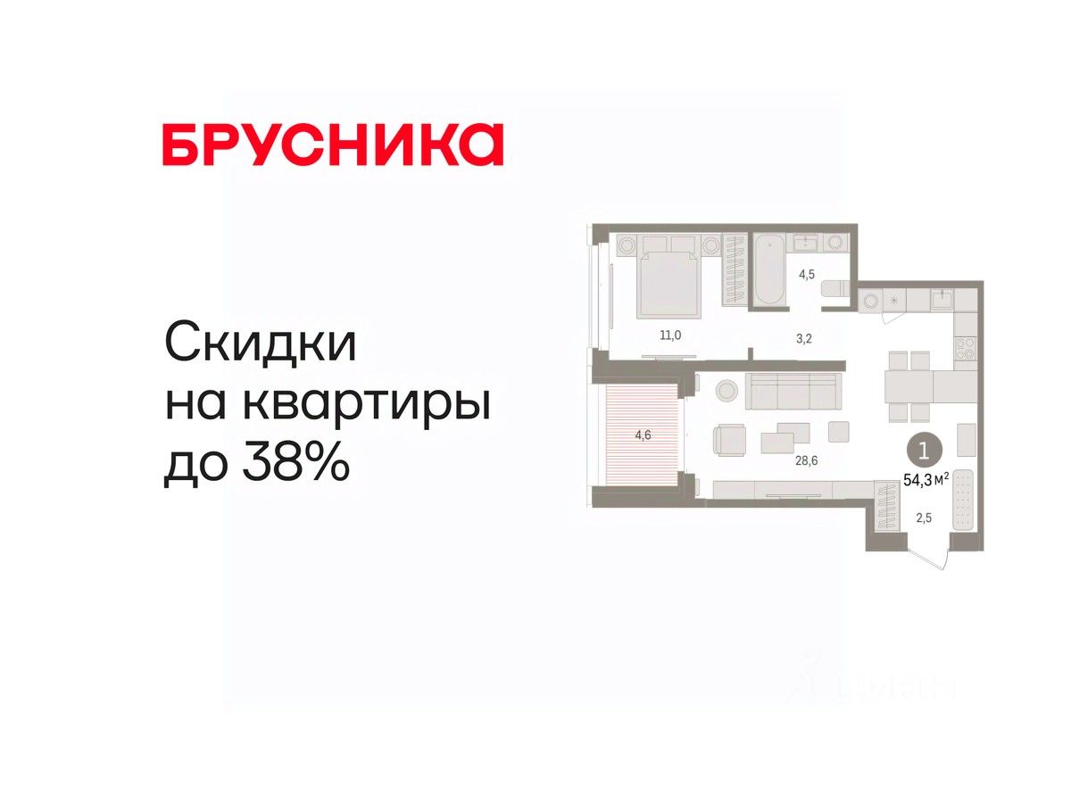Продается 1-комн. квартира с предчистовой отделкой в Кварталы "На Минской" на 4 этаже. Общая площадь: 54.34 кв.м., жилая: 11 кв.м., площадь просторной кухни-гостиной: 28.6 кв.м. Все окна выходят на одну сторону. В квартире одна лоджия, один совмещенный санузел. Высота потолков 2.7 м.