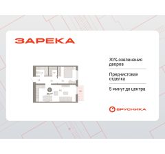 Квартира с кухней-гостиной и одной спальней в жилом районе "Зарека". Особенности планировки: гардеробная, предчистовая отделка, балкон.