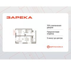Квартира с кухней-гостиной и одной спальней в жилом районе "Зарека". Особенности планировки: предчистовая отделка, постирочная, балкон.