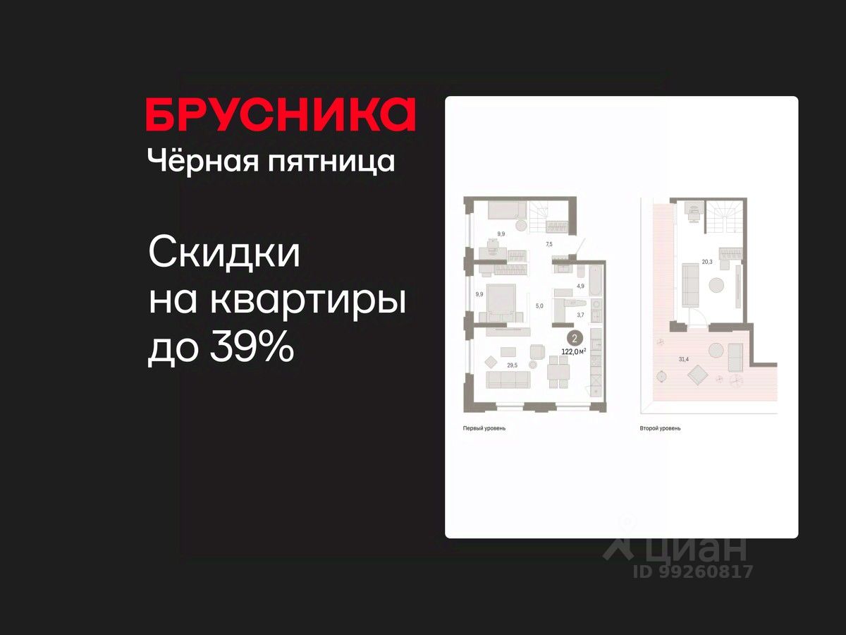 Двухуровневая квартира с кухней-гостиной и двумя спальнями в жилом районе "Зарека". Особенности планировки: без отделки, двухуровневая, панорамное остекление, свободная планировка, мастер-спальня, постирочная, терраса на крыше.