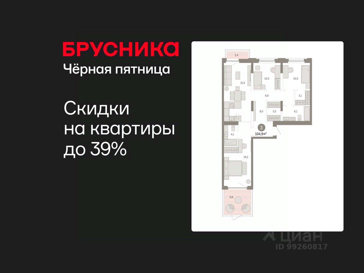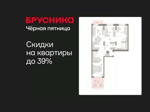 Трехкомнатная квартира с предчистовой отделкой в ЖК "Зарека" на 2 этаже. Общая площадь: 104.92 кв.м. Высота потолков 2.7 м.