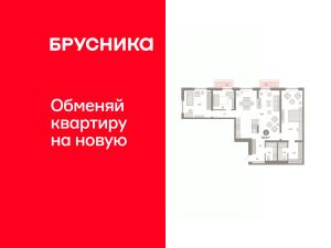 Квартира с кухней-гостиной и тремя спальнями в жилом районе "Зарека". Особенности планировки: балкон, предчистовая отделка, разнесённые спальни.