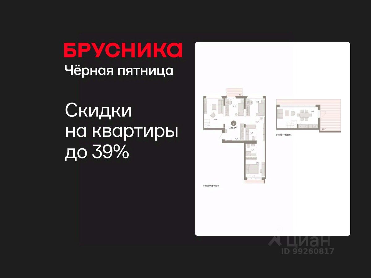 3-комн. квартира от застройщика с предчистовой отделкой в ЖК "Республики 205" на 7 этаже. Общая площадь: 128.51 кв.м. Высота потолков 2.7 м.