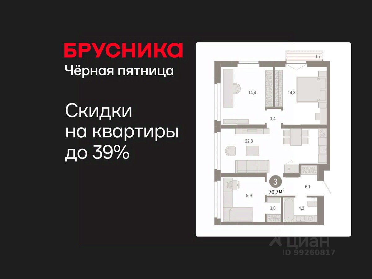 Просторная трехкомнатная квартира с предчистовой отделкой в ЖК "Республики 205" на 6 этаже. Общая площадь: 76.66 кв.м., жилая: 38.6 кв.м., площадь просторной кухни-гостиной: 22.8 кв.м. Квартира угловая, окна oбecпeчивaют paвнoмepнoe ocвeщeниe в тeчeниe дня. В квартире один балкон, один совмещенный санузел. Высота потолков 2.7 м.