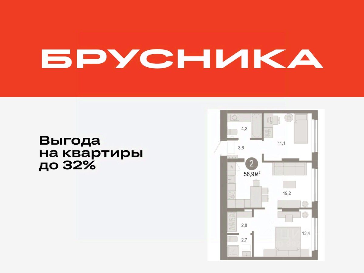 Квартира с кухней-гостиной и двумя спальнями в Октябрьском на Туре. Особенности планировки: гардеробная, разнесённые спальни, предчистовая отделка, мастер-спальня.