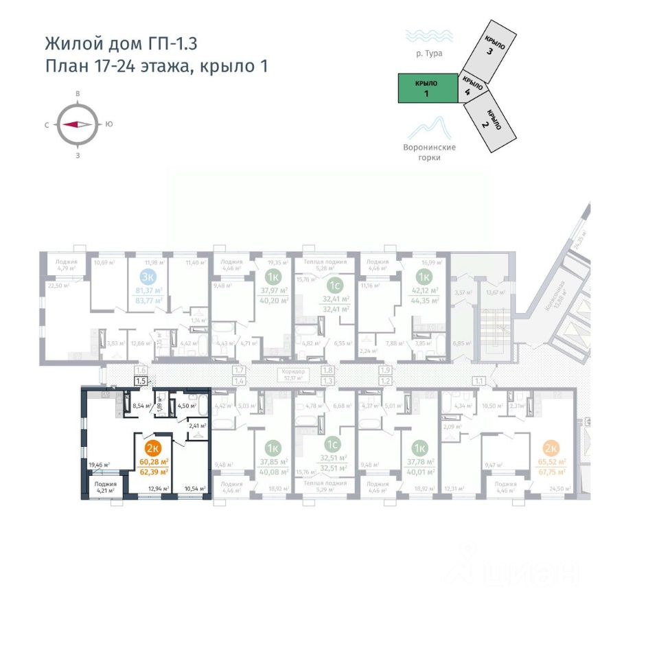 Предлагаем 2 - комнатную квартиру в доме ГП-1.3 общей площадью: 60,28 кв.м., с типом планировки: Кухня-гостиная. Комплекс расположен на территории бывшего завода "ДОК "Красный Октябрь. Это один из самых зеленых и чистых уголков города: здесь нет шумных магистралей и предприятий. До центра всего 2,5 км без мостов и путепроводов, а значит, вы можете спланировать время на дорогу с точностью до минуты. Дома стоят на высоком берегу Туры, на первой линии у воды. С территории ЖК хорошо просматриваются как панорама реки, так исторический центр, Мост Влюбленных и набережная. Проектирование ЖК выполнил архитектор Лазар Герич (Сербия). Из особых фишек проекта 9 лифтов на один дом, колясочные на каждом этаже, зоны ожидания и стойка консьержа в холле. Дворовая территория с игровыми и спортивными площадками - закрытая. Машино-места в комплексе бесплатные, общее число для дома первой очереди 642.