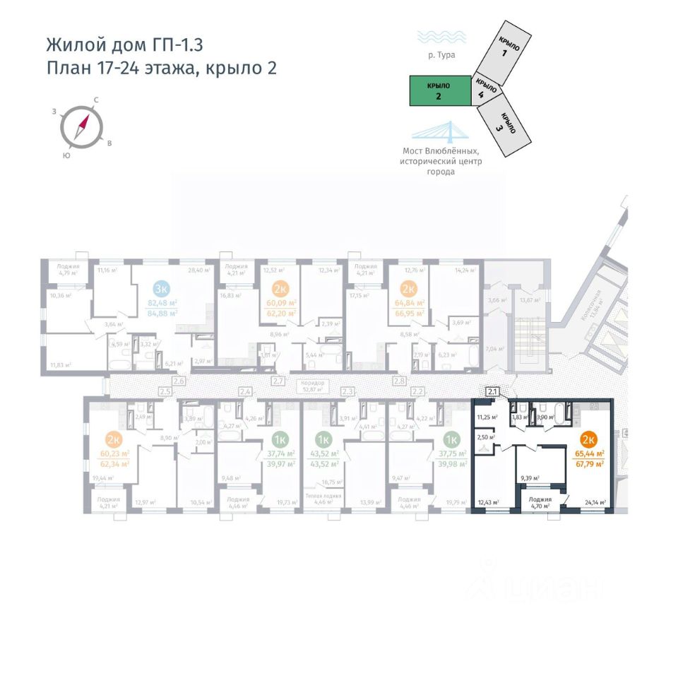 Предлагаем 2 - комнатную квартиру в доме ГП-1.3 общей площадью: 65,44 кв.м., с типом планировки: Кухня-гостиная. Комплекс расположен на территории бывшего завода "ДОК "Красный Октябрь. Это один из самых зеленых и чистых уголков города: здесь нет шумных магистралей и предприятий. До центра всего 2,5 км без мостов и путепроводов, а значит, вы можете спланировать время на дорогу с точностью до минуты. Дома стоят на высоком берегу Туры, на первой линии у воды. С территории ЖК хорошо просматриваются как панорама реки, так исторический центр, Мост Влюбленных и набережная. Проектирование ЖК выполнил архитектор Лазар Герич (Сербия). Из особых фишек проекта 9 лифтов на один дом, колясочные на каждом этаже, зоны ожидания и стойка консьержа в холле. Дворовая территория с игровыми и спортивными площадками - закрытая. Машино-места в комплексе бесплатные, общее число для дома первой очереди 642.