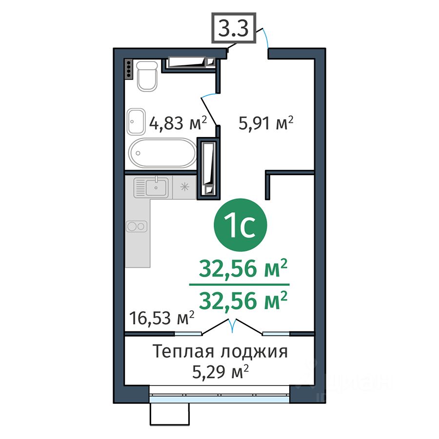Общая площадь32,56 м²